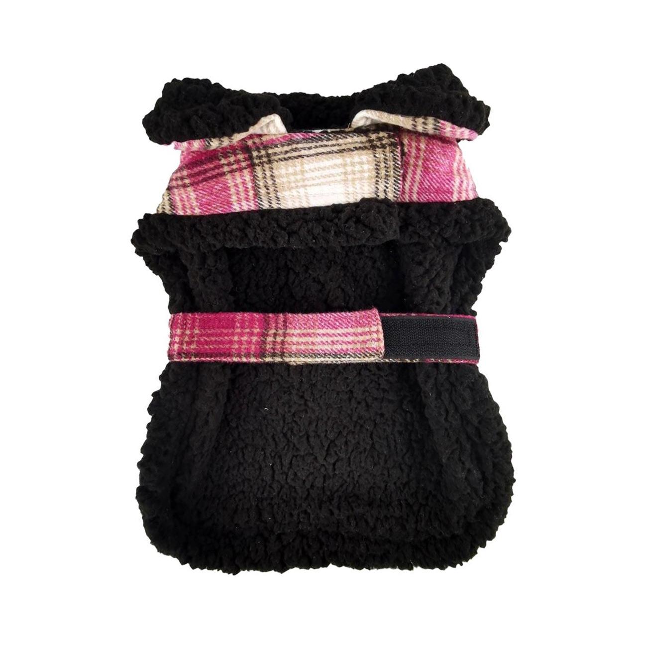 Home > Sherpa-Lined Dog Harness Coat - Hot Pink & Tan Plaid