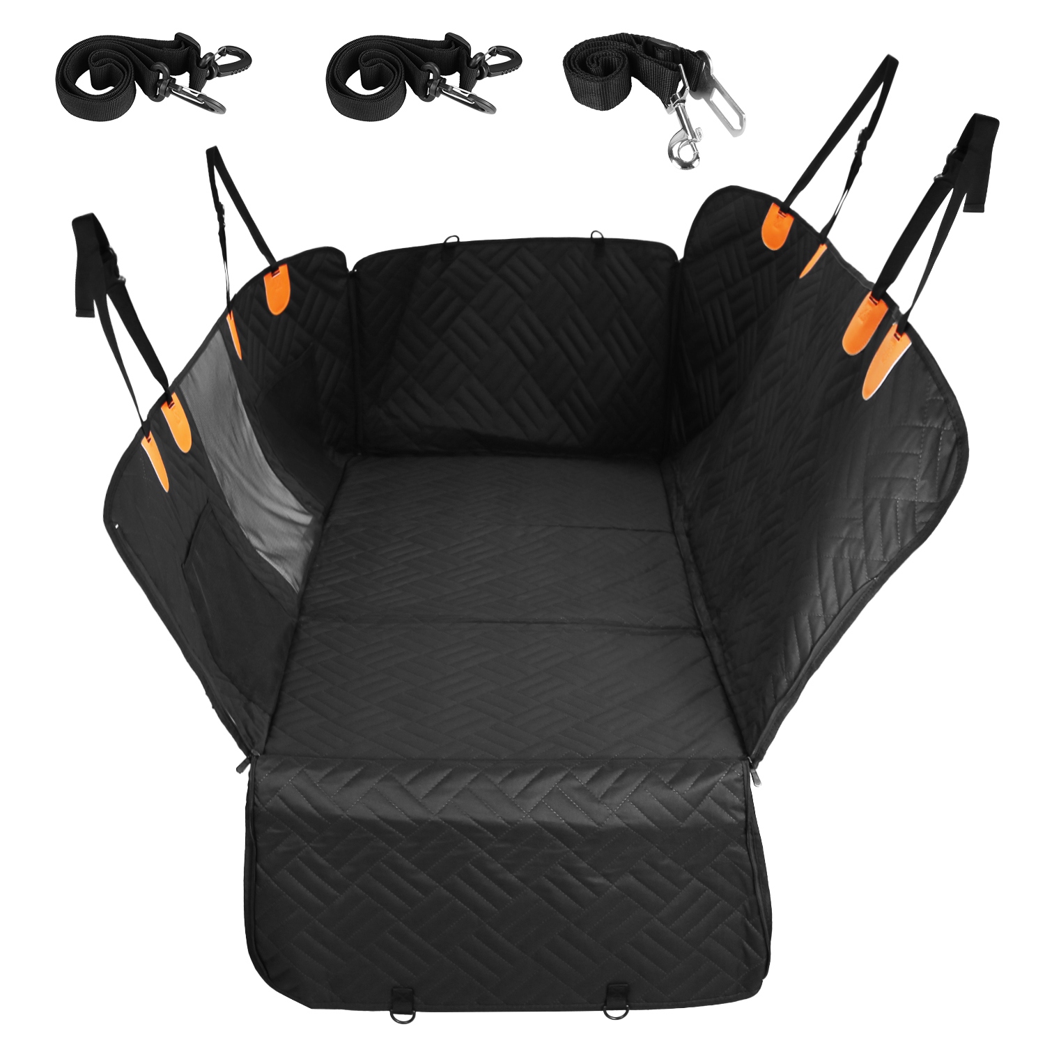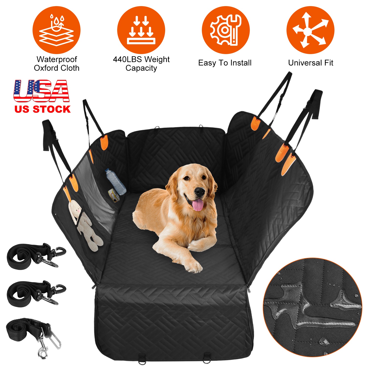 Dog Car Seat Cover For Back Seat Waterproof Oxford Cloth Seat Cover Hammock Non-Slip Scratchproof Back Seat Extender with Side Flap Mesh Window Storag